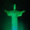 Cristo Redentor foi iluminado de azul e verde em comemoração aos 10 anos do reconhecimento pela Unesco da paisagem do Rio como Patrimônio Cultural da Humanidade